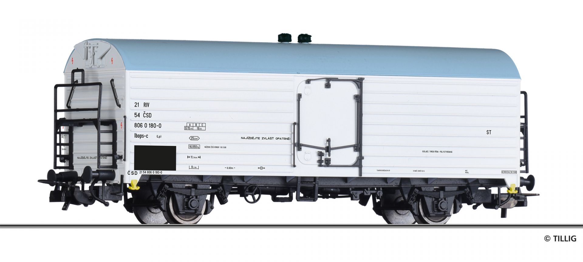 Model chladírenského vozu Ibops-c. ČSD. Měřítko H0.